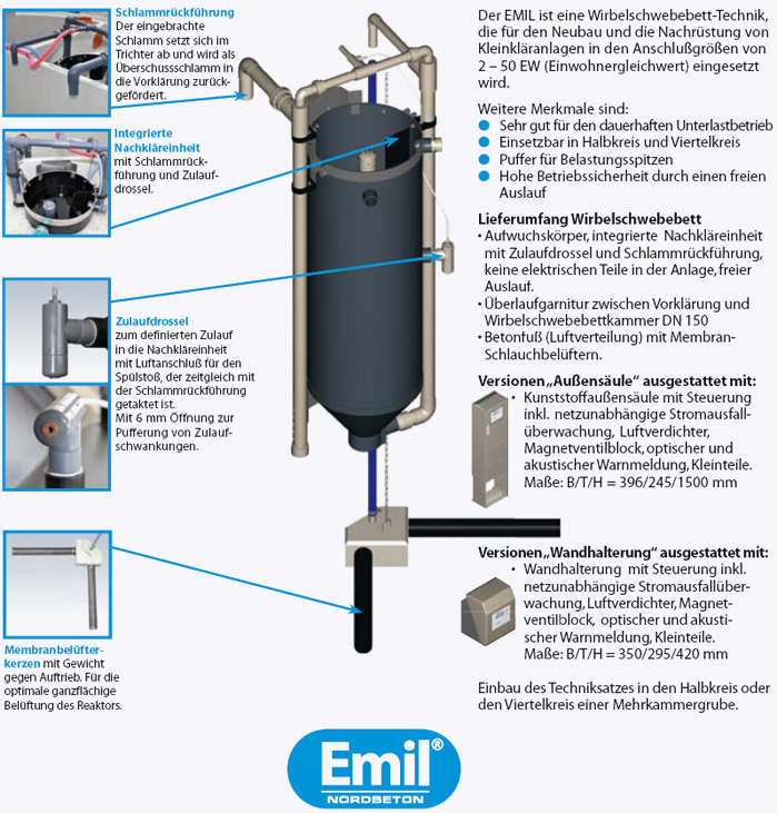 Die Festbettanlage basiert auf einem Dreikammersystem. In der ersten Kammer wird das Abwasser in der Verklärung zunächst von allen Feststoffen getrennt und anschließend in die zweite Kammer weitergeleitet. Hier ist das sogenannte Festbett montiert, worauf sich die zur Klärung des Abwassers notwendigen Mikroorganismen ansammeln.